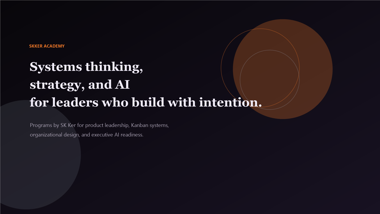 A focused set of SKKER learning experiences across systems thinking, product leadership, and AI strategy.